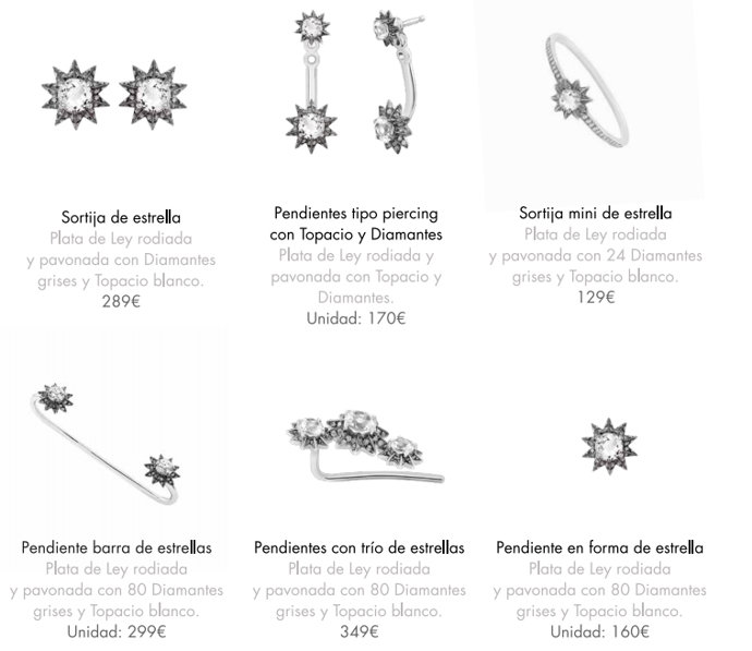 Además las estrellas también llegan a las sortijas y pendientes para hacerte brillar en las noches más especiales.
