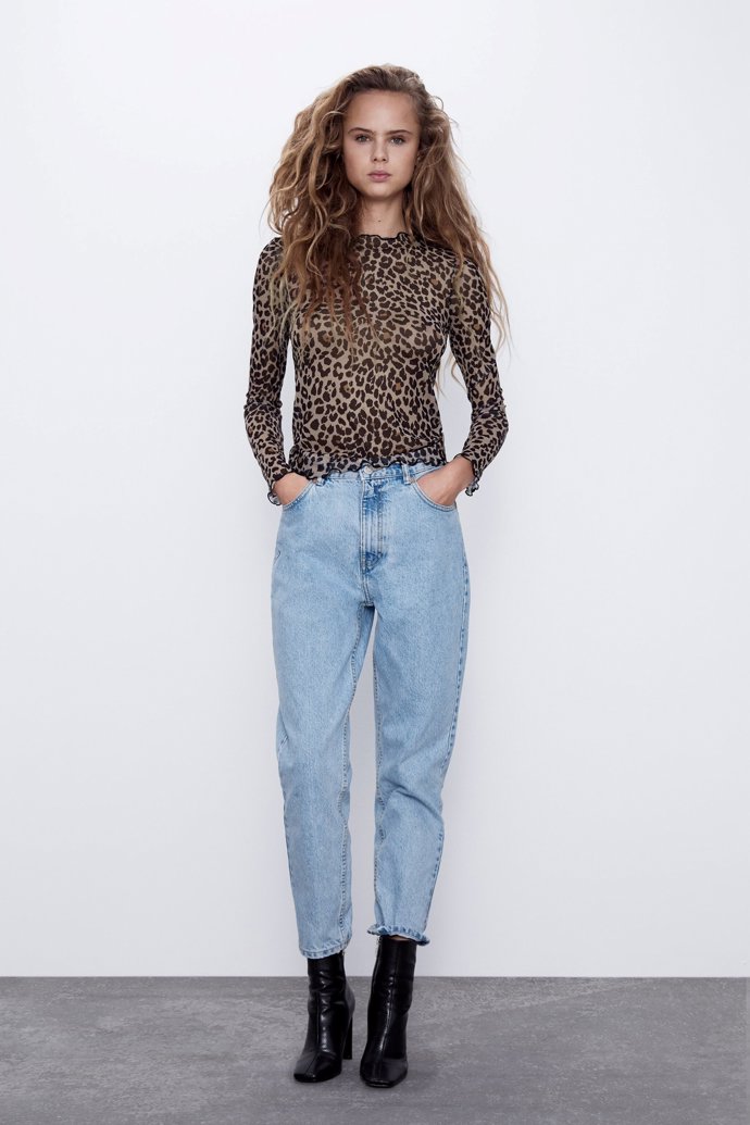 1.Camiseta tul semitransparente estampada de cuello redondo, de Zara, 3,99 €.
