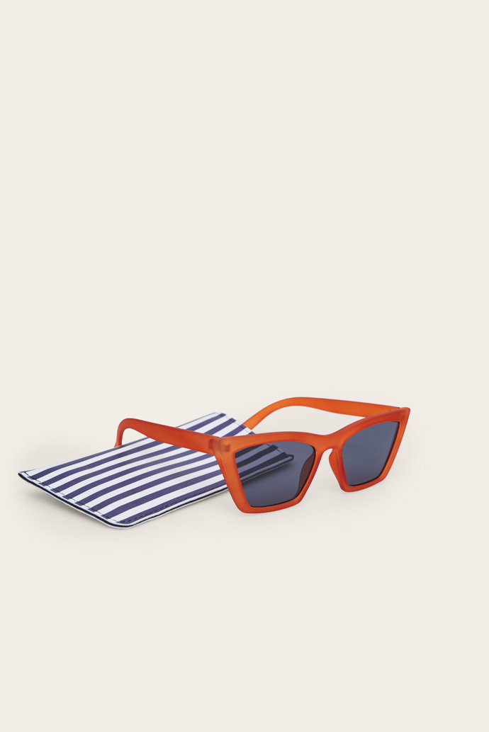 7. Gafas de sol retro, estilo 'cat eye' con montura marrón y funda con estampado de rayas. ¡Protégete del sol con estilo! de WOMEN SECRET, 4.99 €.