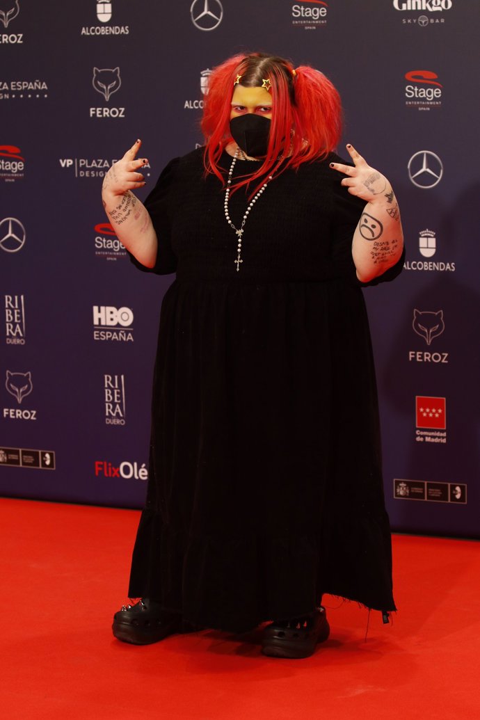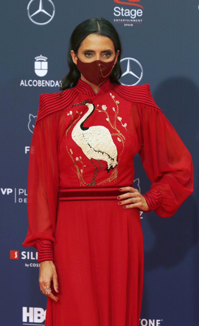 Candela Peña, nominada por su interpretación en 'La boda de Rosa', eligió para la ocasión un minivestido de Jorge Redondo en tonos azules con un gran lazo en uno de los hombros y mascarilla a juego. También como parte del reparto de la misma película, Nathalie Poza lució un traje de Pedro del Hierro con zapatos de Jimmy Choo y maquillaje de Dior.