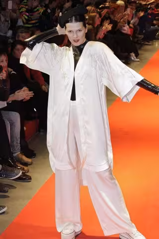 BB: Ha sido muy guay, porque la gente quiere jugar y se trata de eso, de divertirse. Me ha hecho mucha ilusión porque ha participado todo tipo de gente sin ninguna pretensión. Luego al proceso había que darle un poco de cuerpo, era difícil hacer una colección sobre cuerpos que no existían, porque yo hasta dos días antes no sabía quien iba a ser el elegido para el desfile. Los últimos 20 finalistas han sido elegidos antes de ayer. Mi idea fue hacer una talla única para que le quepa a cualquiera, y hemos eliminado cremalleras sustituidas por gomas para que pudieron caberle a cualquier tipo de talla y luego hacer arreglos en el último momento.