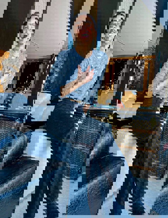 Sin pretenderlo, la artista ha sorprendido en sus redes sociales con estas imágenes en las que nos enseña cuál va a ser el accesorio favorito para muchas de vosotras esta temporada. Se trata de una diadema aterciopelada que recoge el pelo, dejando la cara despejada, para esos días en los que lo único que bsuquemos sea una comodidad máxima.