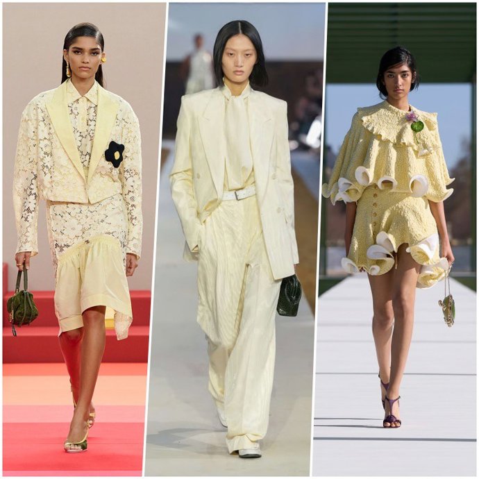 4. El amarillo mantequilla, tan requerido las temporadas pasadas vuelve a posicionarse como uno de los favoritos por su capacidad de iluminar sin exceso. Suave, cremoso y glamuroso, se convierte en un aliado perfecto para cualquier prenda, ya que capturan la luz y levantan el ánimo con solo mirarlos.
