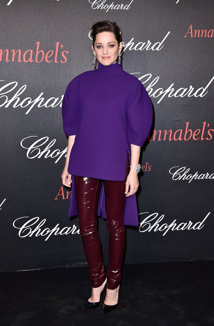 Marion Cotillard. Es el epítome de la mujer francesa y por ello uno de los símbolos del festival de cine más importante de su país. Fue fiel a su estilo personal e innovador con un outfit futurista de la firma española Delpozo compuesto por un top asimétrico de cuello vuelto violeta y unos leggins de lúrex de color burgundy combinado con salones negros de charol y unos pendientes largos de brillantes que resaltaban bajo su estiloso recogido.