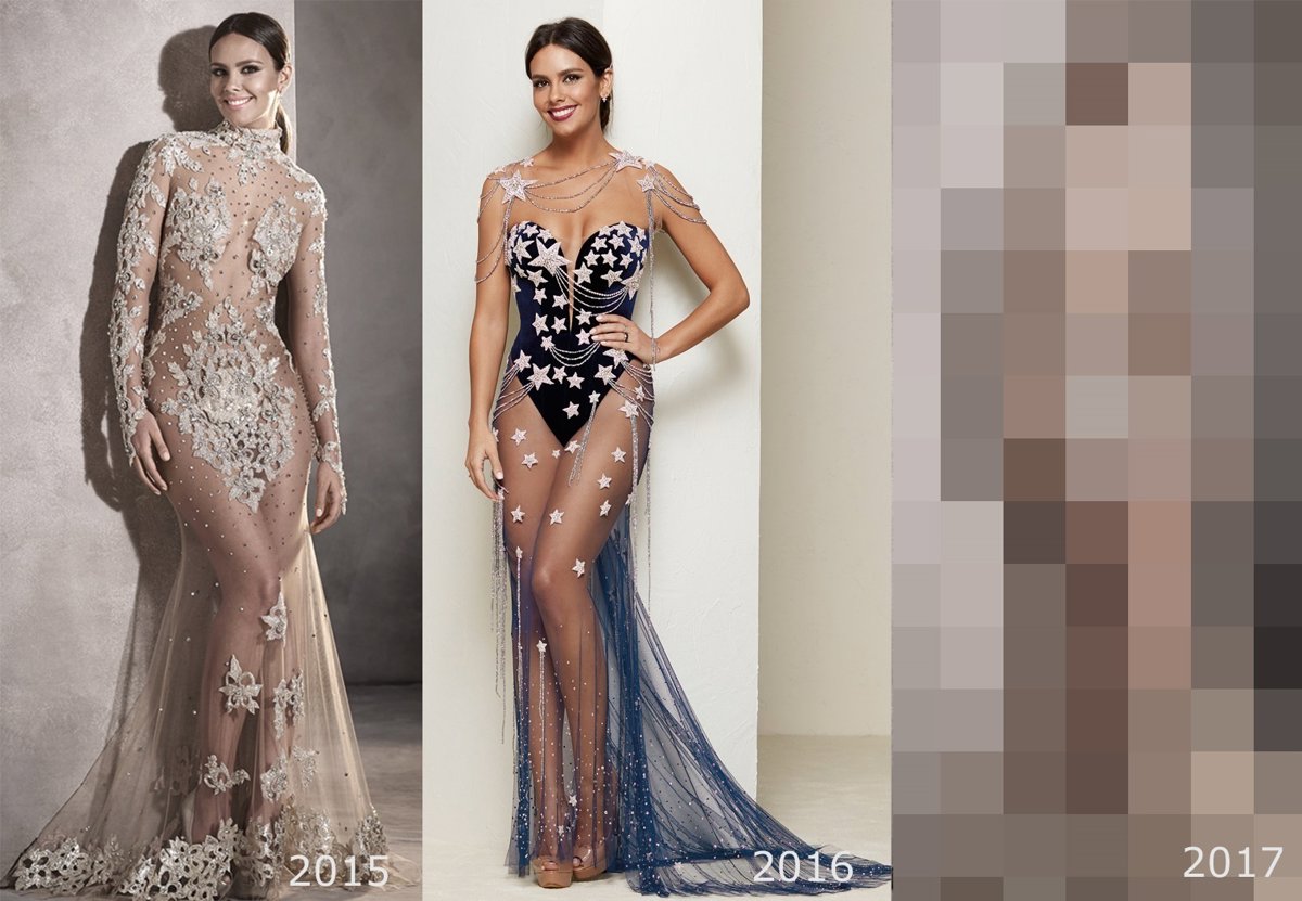 Tres diseños que tendrán esta noche una nueva apuesta. Pedroche ya ha dado algunas pistas como que lucirá dos diseños de Pronovias, aún así mantiene la intriga hasta el final en su blog: "El vestido no es nada sencillo... ¿o sí?".