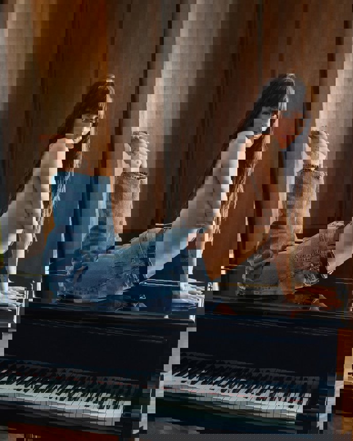 Vestida con prendas de lencería y denim, la actriz encarna una sensualidad relajada y natural que junto a una puesta en escena sencilla, reencarna la identidad visual que históricamente ha caracterizado a Calvin Klein.