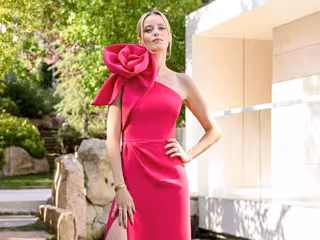 Para este evento tan emotivo, Daphne ha elegido un vestido rosa capote, con una flor XL en el hombro, un diseño de invitada ideal, perfecto para la ocasión. Un vestido asimétrico, con abertura lateral, efecto pierna infinita, muy tendencia en esta temporada estival. Siendo un color muy favorecedor.