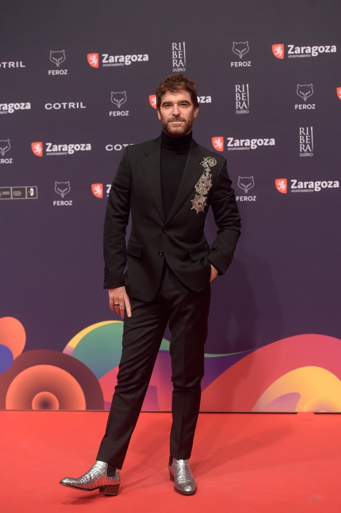 Siempre ha posado en los photocalls como uno de los hombres más atractivos y que mejor sabe mirar a cámara y esta noche no podía ser menos. El actor ha sorprendido con un atuendo de lo más oscuro, elegante y sobrio, resaltando cómo no su figura estética. Traje de chaqueta y pantalón combinado con un jersey de cuello alto de la misma tonalidad, oscuro. Lo que más nos ha llamado la atención -y nos ha enamorado- son esos botines efecto piel de color plateados.