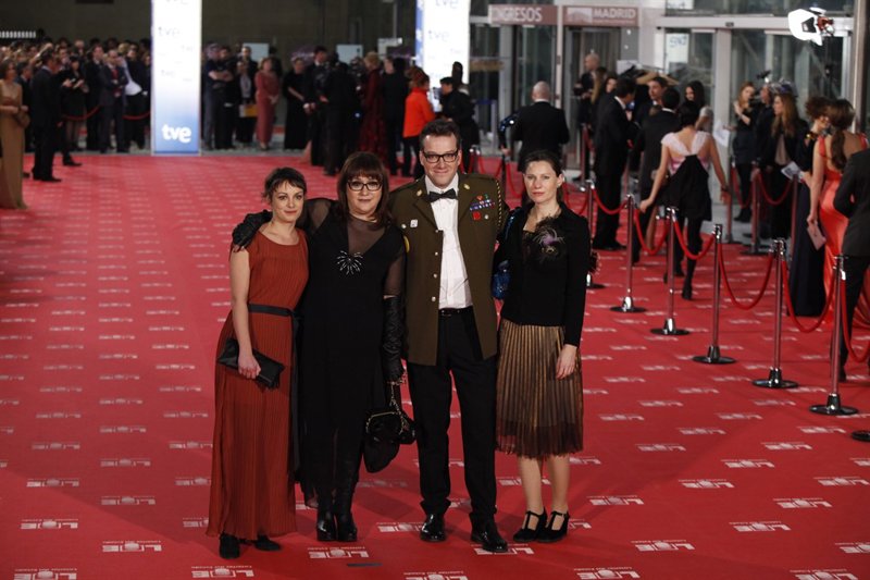 En este grupo no podían faltar Belén Rueda con un impactante traje rojo hecho a medida de la línea de Alta Costura de Pedro del Hierro, ajustado, de cuello barco y manga larga, Leonor Watling, del mismo color, con un diseño de Miriam Ocáriz cerrado con abertura en la falda y detalle de lazo en un hombro más complementos dorados.