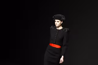 La noche del cordobés es mágica. Las lanas y el terciopelo dan paso a las sedas y las gasas para envolver a una mujer sensual y 'glamourosa' que no renuncia a la imaginación. La superposición de tejidos transparentes, los brocados, las plumas superpuestas y los cordones de pedrería son detalles imprescindibles, al igual que las hombreras de inspiración torera, bordadas en azabache y de las que en ocasiones caen largas gasas. Aparece el rojo pasión, pero de nuevo el negro es imprescindible, también en los guantes a lo Greta Garbo.