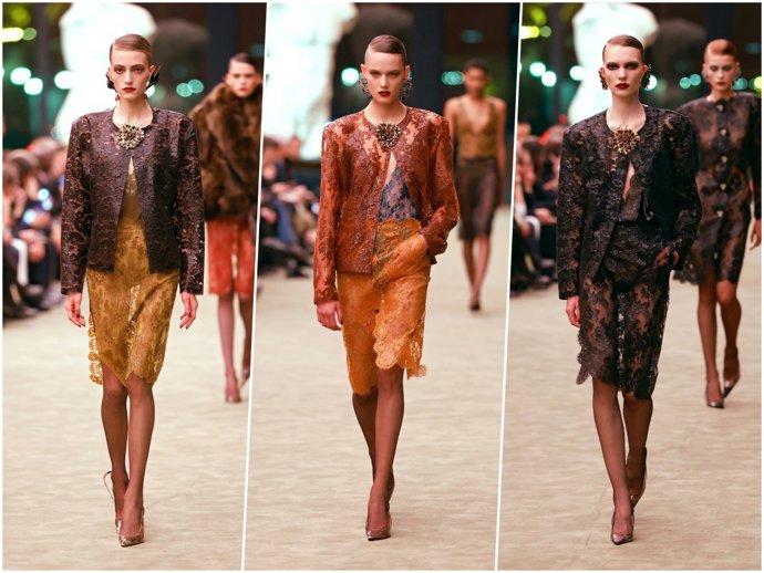 Si hubo un tejido que marcó el desfile ese fue sin duda el encaje. Presente en la gran mayoría de las prendas, predominaba en vestidos, blusas y faldas, jugando con las transparencias y capas.