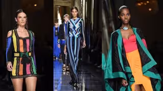 Rousteing arriesgó con la combinación de transparencias y denim, los llamativos escotes y con el colorido de las prendas, teñidas en negro, naranja y rosa, aunque no faltaron tampoco sus icónicos blanco y negro y el estilo army que tanto caracteriza a la firma y que seduce a celebrities como Kim Kardashian y Kanye West. El crochet también estuvo presente en conjuntos de tops con escote halter y faldas, que tienen un toque muy veraniego.
