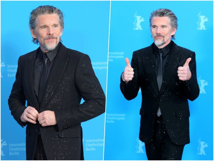 El dos piezas de Ethan Hawke confeccionado con lentejuelas que hace brillar