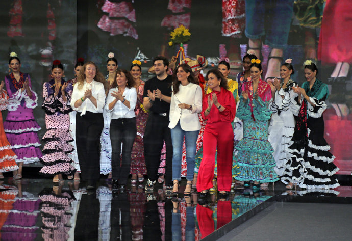 Qué mejor celebración para Lourdes Montes y su socia Rocío Terry en el décimo aniversario de la creación de su firma 'Miabril' que presentar su nueva colección en la jornada inaugural de SIMOF 2026 en el Palacio de Congresos y Exposiciones de Sevilla , que convierte estos días a la ciudad andaluza en el epicentro de la moda flamenca.