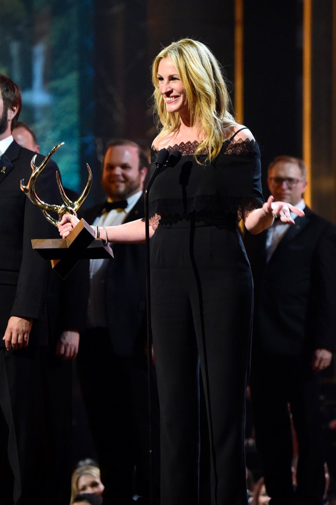 Destacó también la presencia de actrices como Julia Roberts, que lució sonris ay mono negro de encaje, y Sarah Hyland con el look más original compuesto de inspiración masculina con crop top y choker con forma de pajarita. No pudo faltar la modelo y presentadora Olivia Munn, que se decantó por un little back dress y se peinó con las boxer braids al más puro estilo Kim Kardashian.