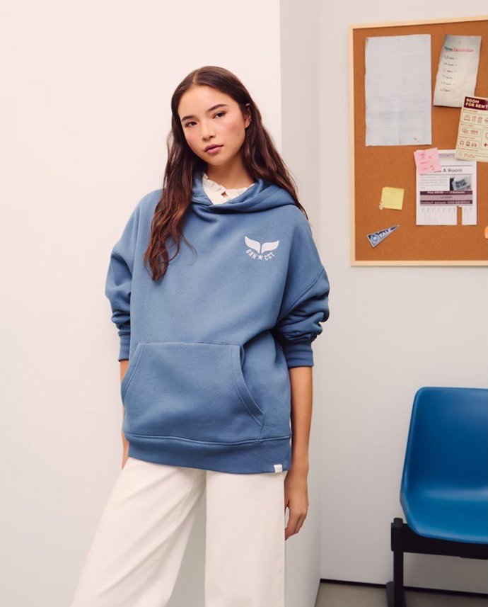 Siguiendo con la estética de Inés Hernand, esta de Green Coast es ideal para el día a día: cerrada, con capucha y con el logo en la parte frontal que aporta distinción. Además, está disponible en dos colores: azul y crema.