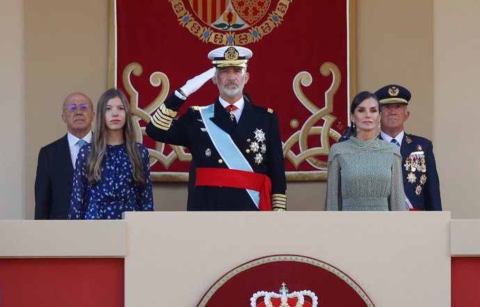 No solamente la Reina Letizia ha brillado en el Día de la Hispanidad, también lo ha hecho su hijo, la Infanta Sofía, que ha presenciado el desfile de las Fuerzas Armadas sin la compañía de su hermana, la Princesa Leonor, por segundo año consecutivo. Para la ocasión ha escogido un vestido corto de la firma Carolina Herrera, una de las preferidas de la monarca.