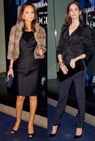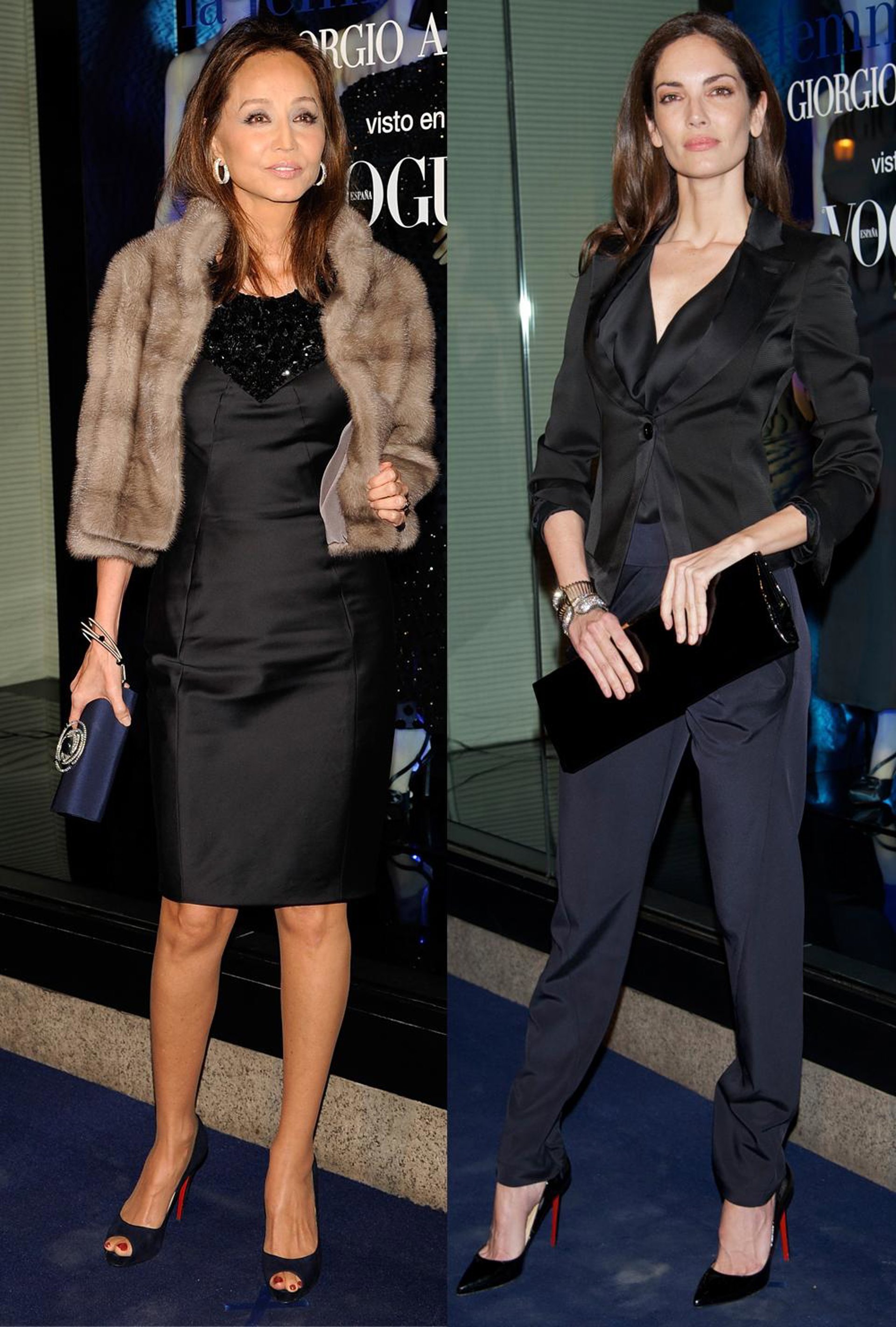 Y precisamente allí estaban las dos. La esposa de Miguel Boyer aportó todo el lujo y el glamour a la fiesta, dando muestra de su elegancia y su buen gusto por la moda mientras lucía un impresionante vestido negro de Giorgio Armani con escote de pedrería y peep-toe a juego. Para protegerse de las bajas temperaturas de la capital, Isabel se abrigó con una chaqueta de piel de visón con manga francesa.