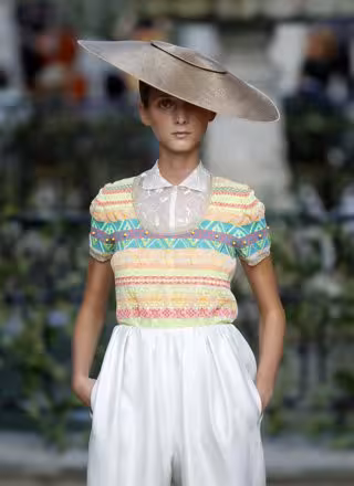 Siete de la tarde del último jueves de agosto en el madrileño parque de El Capricho. En un marco incomparable, rodeados de vegetación y con el sonido del agua que emanaba de una antigua fuente al ritmo que marcaba The Chinese Birdwatchers -el grupo de música elegido para la ocasión-, Font consigue transportarnos, desde el primer momento en el que la primera de sus modelos sale a escena, a los tiempos en los que la Alta Costura vivía su edad de oro.