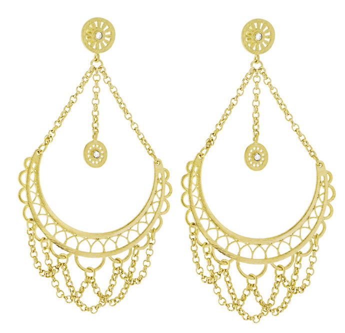 Esclavas, anillos de banda, pendientes tipo chandelier y collares, todos ellos realizados en metal chapado en oro, dan vida a un mundo mágico de luces y colores, para avivar una realidad femenina de