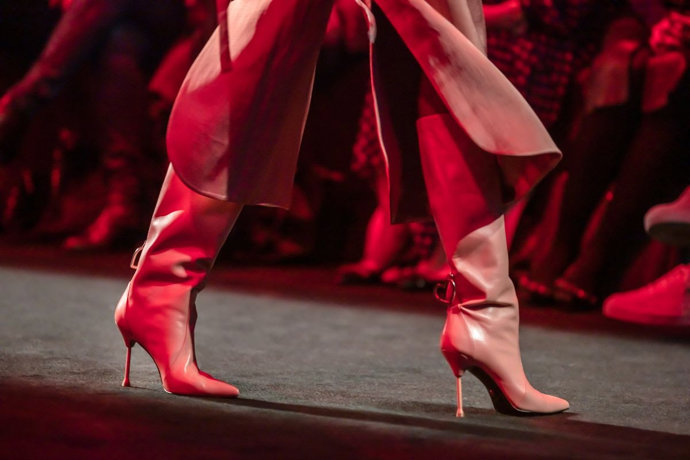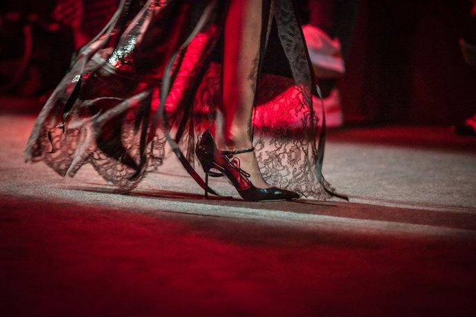 Con estas premisas de estilo y de intención, MAGRIT ha creado unas fetichistas botas de tacón y punta fina y unos zapatos de cristal Swarovski con fino tacón de metal, ambas piezas en colores negros, rojos y rosas en armonía con los diseños de Juan Vidal. Un elemento diferenciador que le da el toque final a los looks de las modelos que desfilaron por la pasarela de la MBFWM.