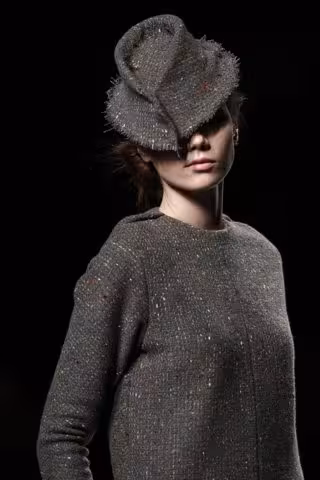 Juanjo Oliva ha iniciado un interesante viaje por los años 50 en el que lo más importante es ensalzar la feminidad. En un desfile más lento de lo habitual y a ritmo de notas musicales de piano, haciendo un guiño a Alfred Hitchcock, este diseñador madrileño ha empezado mostrando una línea marcada por el tweed y los colores anaranjados.