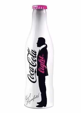 Karl Lagerfeld se ha unido a Coca-Cola para diseñar una edición limitada de las botellas de esta popular bebida. Para ello Lagerfeld ha decidido inspirarse en sí mismo, por lo que la botella es totalmente blanca con una silueta del modisto posando de perfil, vestido con su habitual traje de chaqueta negro.