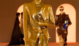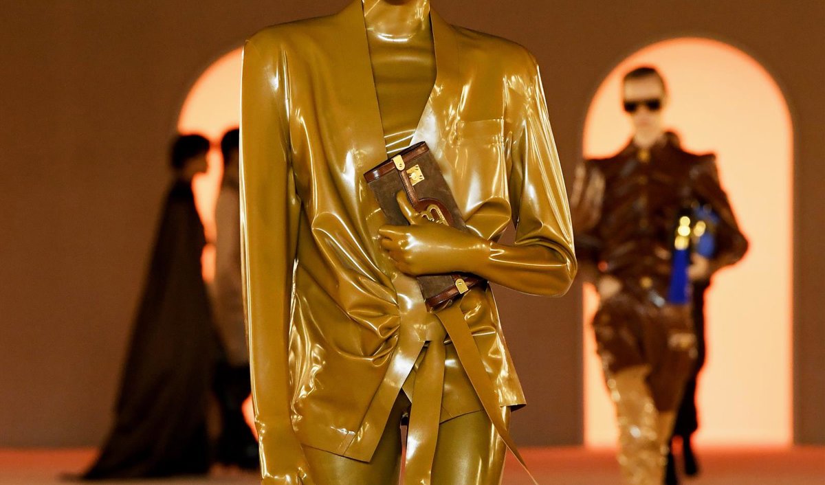 La última obsesión de Kim Kardashian acaba de salir del desfile de Balmain. Se trata de un impresionante traje de látex que forma parte de la colección otoño-invierno 2020/21. La influencer se ha enfundado en ajustadísimos pantalones, combinados con una chaqueta con hombreras anudada en un lateral de su cintura sobre un top con cuello alto y guantes, todo en tono caramelo. Siendo así Kim la encargada de llevar el look de las pasarelas a la calle, donde se convirtió en el centro de todas las miradas.
