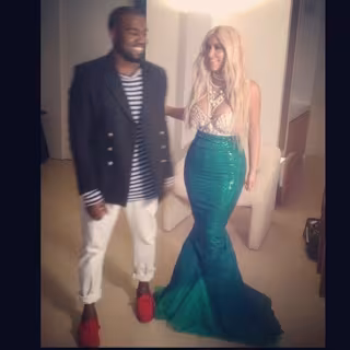 En este caso, la hemos visto junto a su inseparable pareja, el rapero Kanye West quien también ha decidido disfrazarse con un divertido traje de marinerito, compuesto por unos pantalones blancos, una camiseta de rallas marineras, una americana azul y unos mocasines en tono coral, sin duda el complemento perfecto para el look.