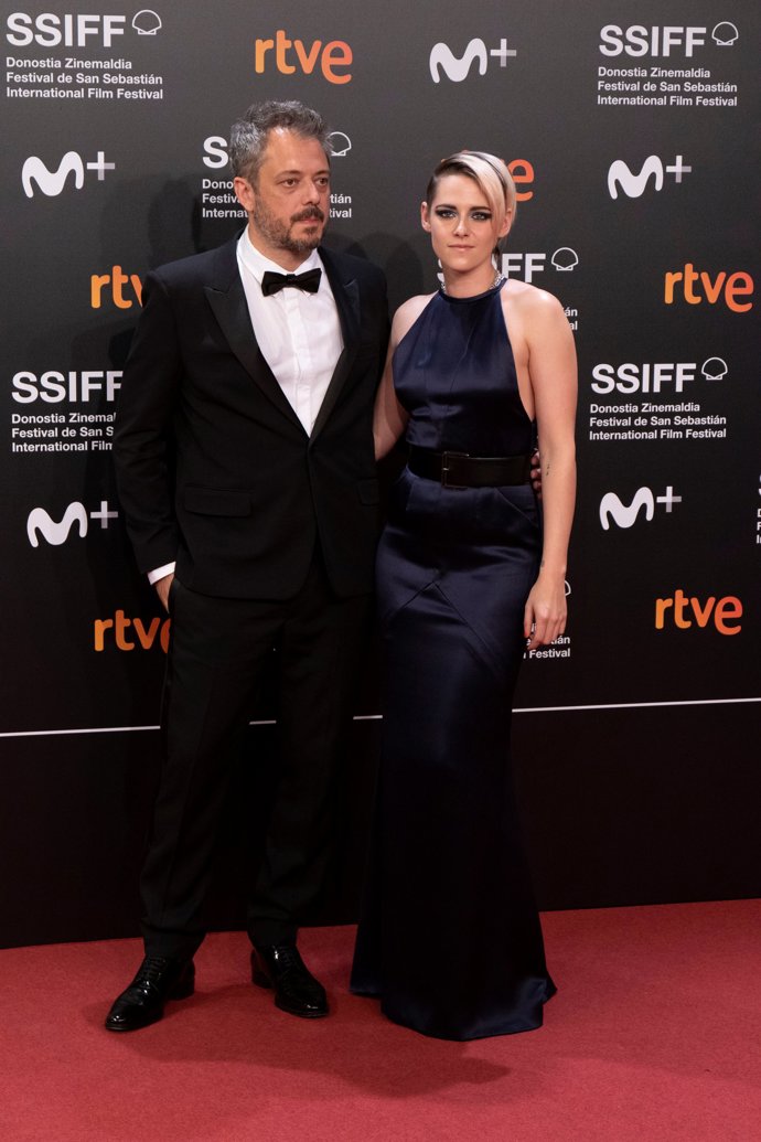 Así, la presencia internacional la puso la actriz Kristen Stewart junto al director Benedict Andrews. La intérprete americana apostó por un acertado vestido azul noche en tejido satén y con escote halter.