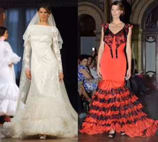 Además, el desfile se abrió con una réplica del vestido de Grace Kelly y, después, también pudimos ver otra de uno de los trajes de la Reina Sofía. A continuación, Lina Fernández ha seguido "con una línea de inspiración torera" y después "otra para el Rocío". "Ya por último, los lunares clásicos de Sevilla de siempre".