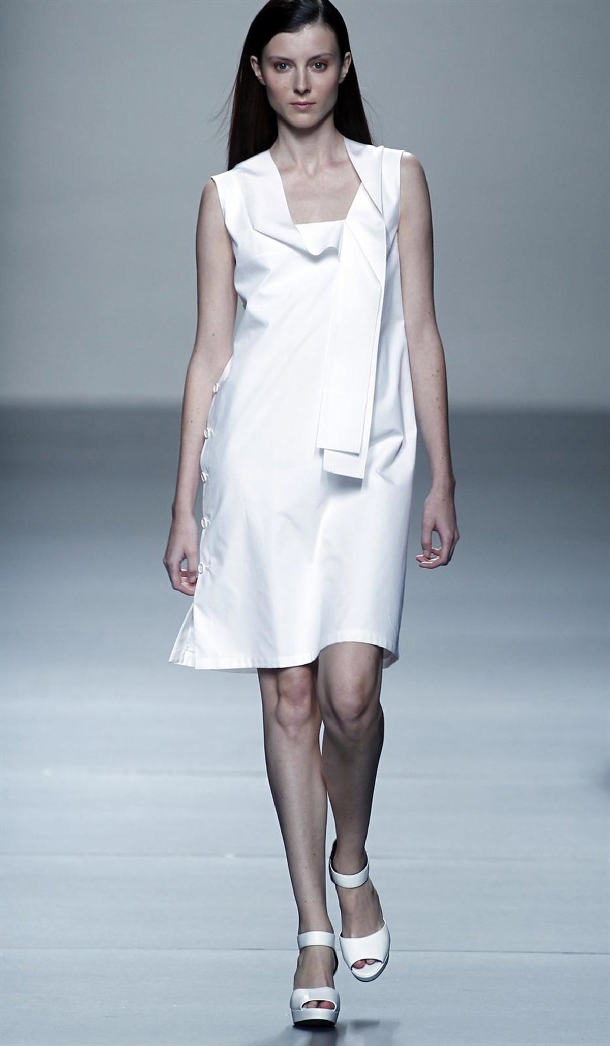 Sofisticación, seducción e intemporalidad. El cuarto desfile de la tercera jornada de la 54 edición de Cibeles Madrid Fashion Week presenta una colección de lo más retrospectiva y con aires navy que se hacen realidad en los tejidos impermeables y los colores azul y blanco que tan bien sientan en verano.
