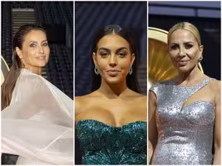 En la misma línea estilística que Marta Sánchez, se movió Giorgina Rodríguez, quien también siguió los pasos del a cantante subiéndose al escenario, pero ese es otro cantar. La flamante esposa de Cristiano Ronaldo se decanto por el verde botella, con la esperanza de que ni su escote palabra de honor ni la 'infinity' abertura de la falda le juagaran una mala pasada.