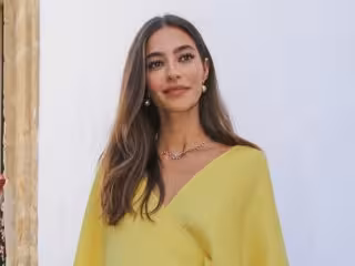 La joven ha elegido un vestido minimalista de color amarillo- muy otoñal y perfecto para el día que les ha acompañado- de corte fluido, mangas amplias y escote en V. Una elección ideal ya que estiliza su figura gracias a su movimiento natural.