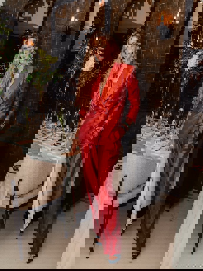 ¿A quién no le gusta un traje sastre? Johanna von Müller-Klingspor escogió una de las opciones más sofisticadas de la colección con americana cruzada y pantalón palazzo en color rojo. Una elección espectacular para estar cómoda y elegante en cualquier evento de esta primavera.