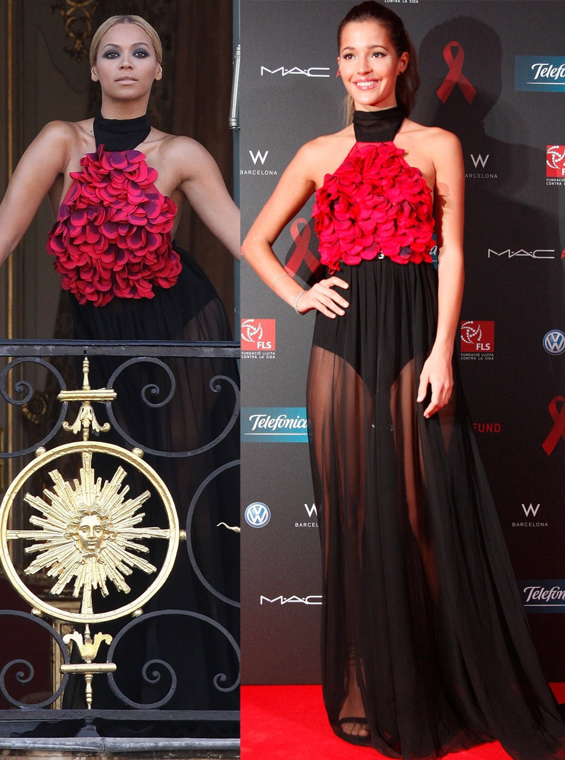 Entre tanta solidaridad, glamour y elegancia, un vestido conocido. La ex novia de Carles Puyol nos cegó con su estelar aparición, pero tras recuperar la visión y el impacto, hemos caído en la cuenta de que ese diseño ya lo habíamos visto en otra parte...