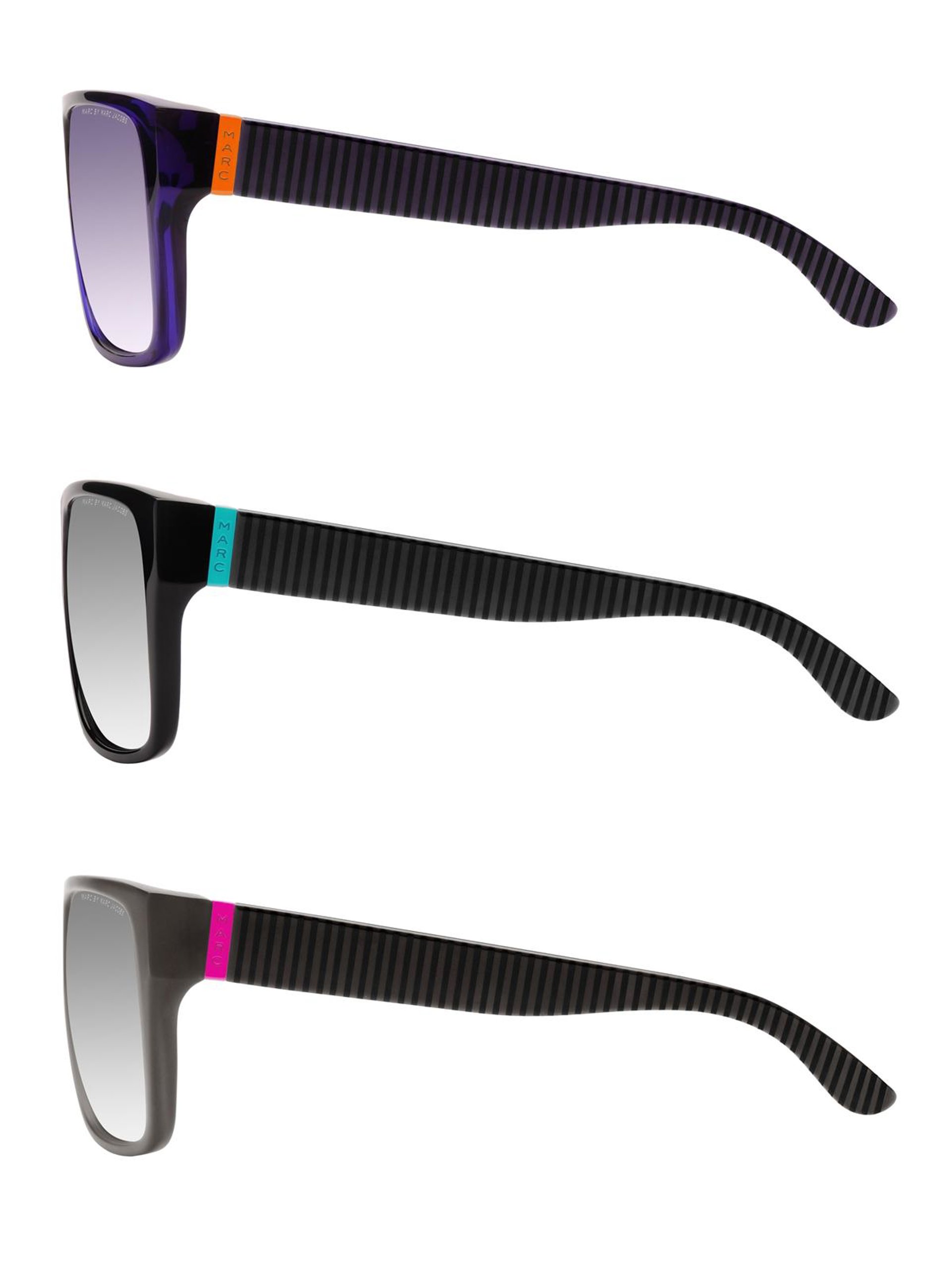 El modelo MMJ 096/N/s se ofrece en nuevos fantásticos colores tono sobre tono con la personalización del logotipo 'MARC' en contraste: negro brillante y opaco con el detalle del logotipo turquesa, gris opalino con el detalle fucsia y violeta/azul con el detalle naranja.