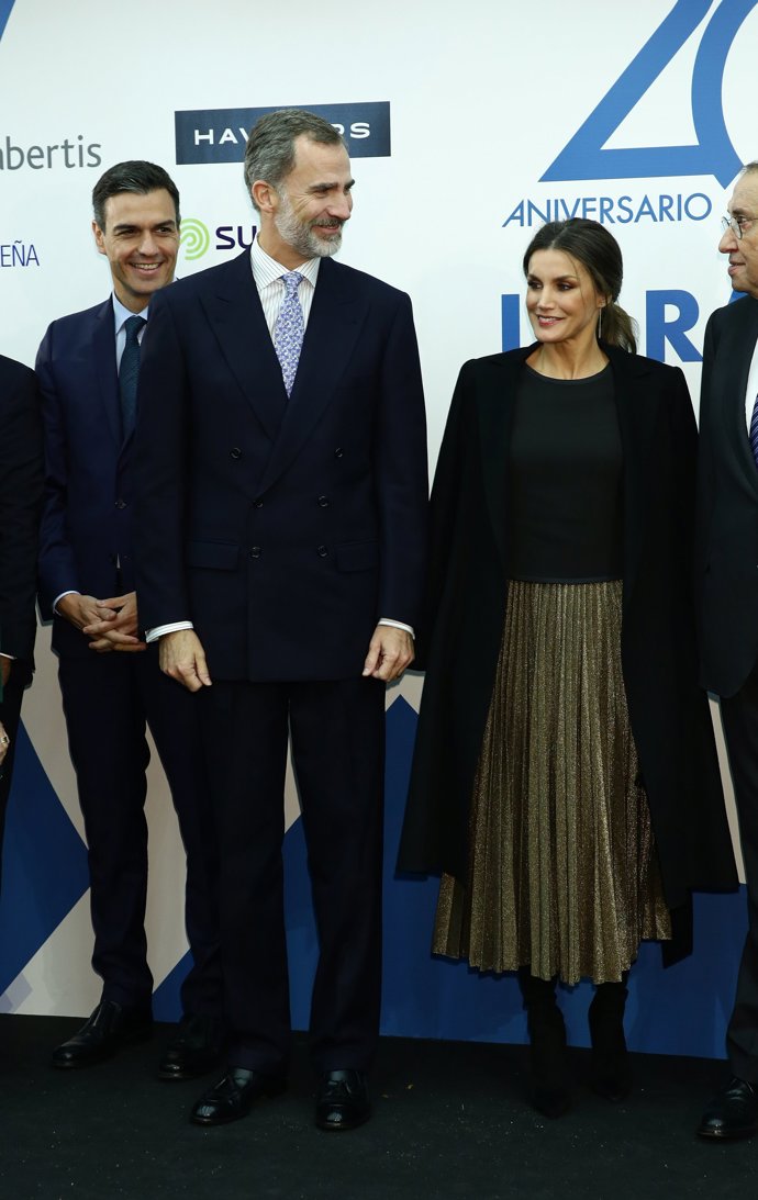 Acorde a las nuevas tendencias, Su Majestad la Reina Letizia optó por un look muy acertado. Sin renunciar a la elegancia que tanto caracteriza, Letizia sacó el dorado de su armario para adelantarse a las fechas navideñas que están por venir.