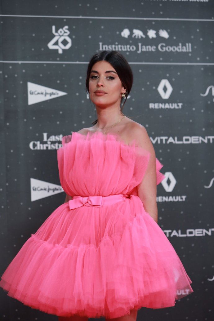 Lola índigo, ganadora del premio a la Artista Relevación, escogió un diseño en rojo del valenciano Alejandro Resta.