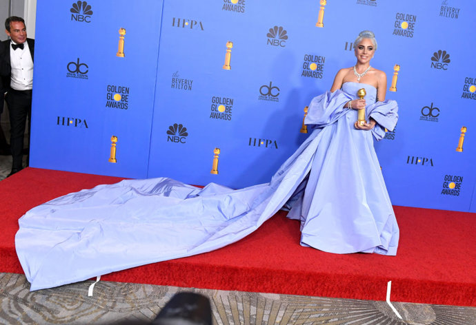 En ese misma red carpet vimos a una Lady Gaga pletórica tras su victoria por su papel protagonista en Ha nacido una estrella. La cantante e intérprete logró dejar a todos boquiabiertos con un diseño en azul celeste de escote palabra de honor y cola infinita.
