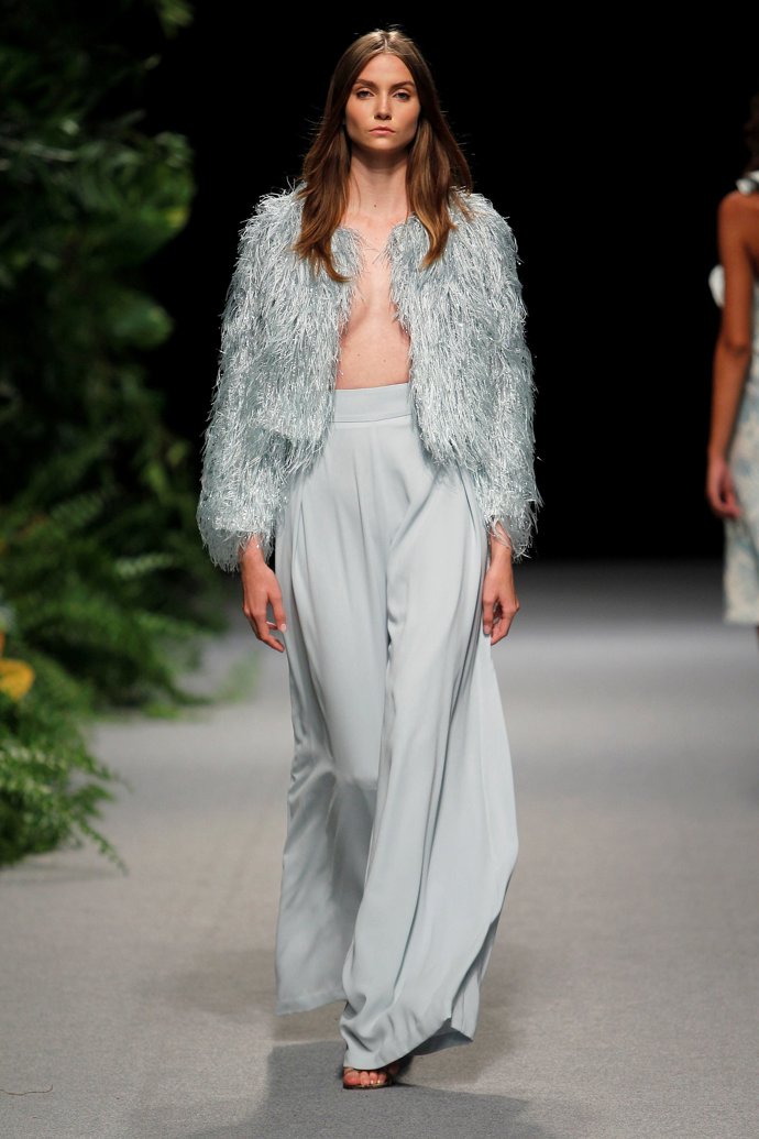 Su colección derrocha feminidad con faldas vaporosas que marcan la cintura, vestidos con escotes pronunciados, espaldas al descubierto, camisas con lazadas, crop tops que combinan a la perfección con los pantalones fluidos.
