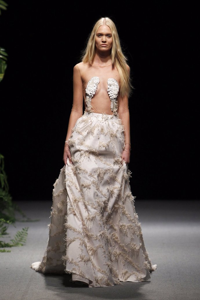 La guinda del desfile, como manda la tradición, fue un vestido de novia que no podía ser más atrevido: cuerpo de red con transparencias que solo ocultaba lo imprescindible y falda de estilo lady con volumen y cola.