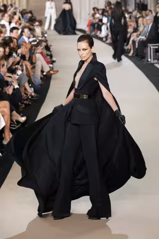 "Diseños de cortes entallados, línea sirena y capas cubriendo los hombros. No faltan bordados de plumas y los cinturones metalizados que ya se han convertido en sello de identidad para este creador", apunta la revista. Todo ello, bajo la atenta mirada de la primera fila, en la que pudimos ver a Kim Kardashian y Kanye West, entre otros.