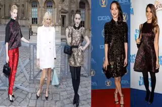 Vestidos como el de la actriz Bérenice Béjo, de cóctel en jacquard estampado de encaje negro y cobre apoyaron el lema de Louis Vuitton para la nueva colección: Lace is More (El encaje es más). La actriz lució el vestido con sandalias y bolso Monceau en charol negro. Así como el vestido de raso negro con estampado de encaje en rojo que lució la actriz Jessica Alba, combinado con unos zapatos de salón también de Louis Vuitton.