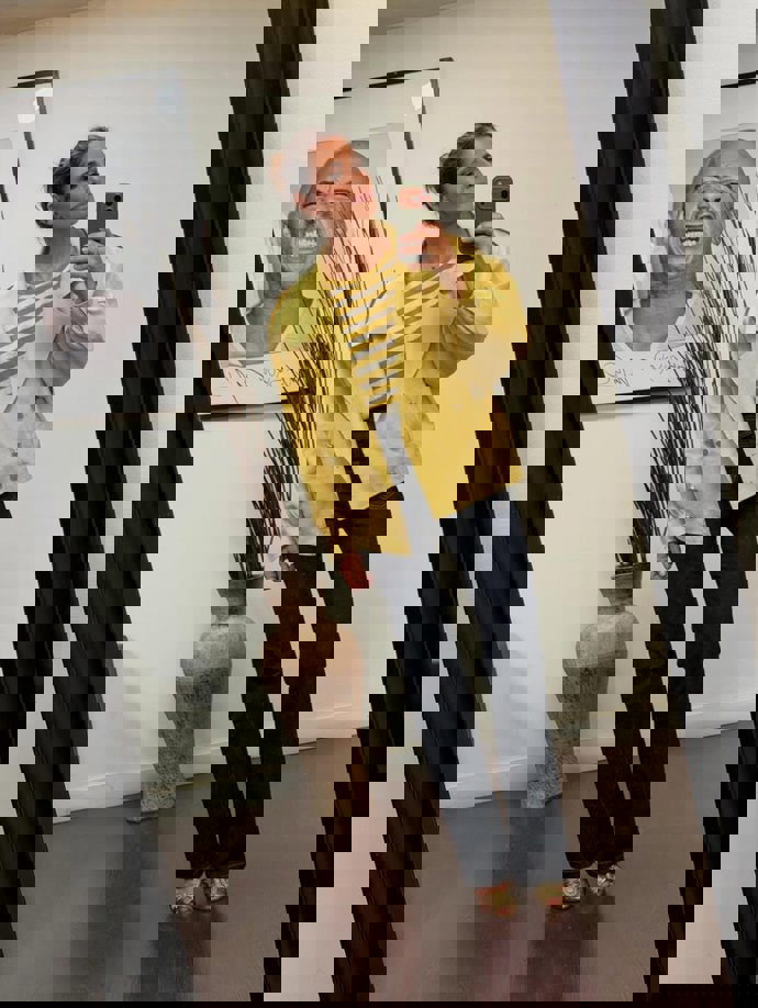 Si tuviéramos que destacar la prenda estrella de su look, esa sería su chaqueta. Una prenda versátil e imprescindible para vivir esta primavera al límite. Sobre todo, ideal para esas horas más frescas o incluso para los días en los que las tormentas amenazan. Además, no solo es un acierto por su funcionalidad, también por su color: amarillo mantequilla, del que tanto hemos oído hablar estos últimos meses.