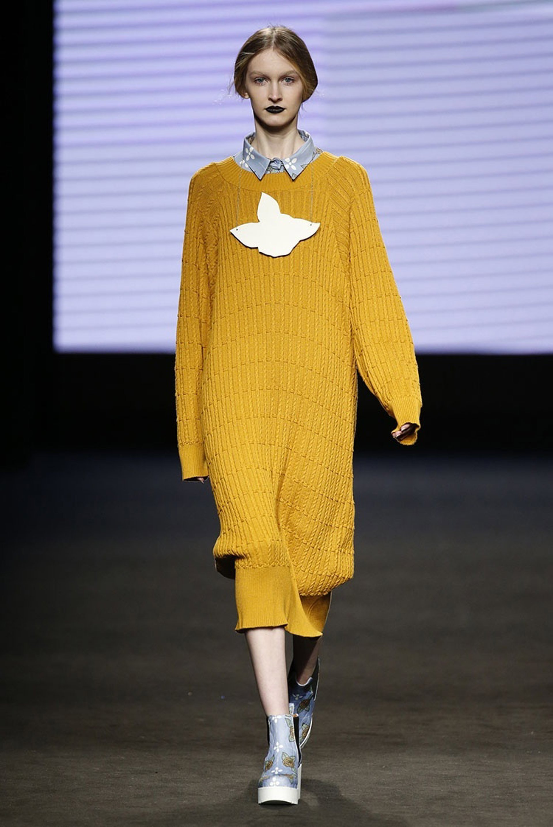 Una colección que ha contado con la colaboración de Koetania en los complementos. Rita Row se ha estrenado en la pasarela con "WOW" (Widows of Woodland- Viudas del bosque). La esencia de la colección se basa en el retiro de dos viudas a los bosques de Noruega. Las piezas se inspiran en estas dos protagonistas para presentar una indumentaria de toda la vida, siendo el punto uno de los tejidos protagonistas y apostando por una gama de colores donde predomina el mostaza, el azul cielo y las tonalidades de grises.