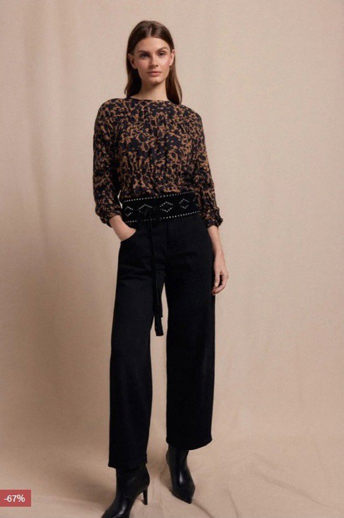 Por otro lado, la marca Slowlove apuesta por una pieza única que hará de tu estilismo una obra de arte debido a su exquisitez y cuidado: un pantalón confort en color negro, de tiro alto con cierre mediante cremallera oculta por tapeta y bolsillos delanteros alargados... perfectos para cualquier ocasión especial.