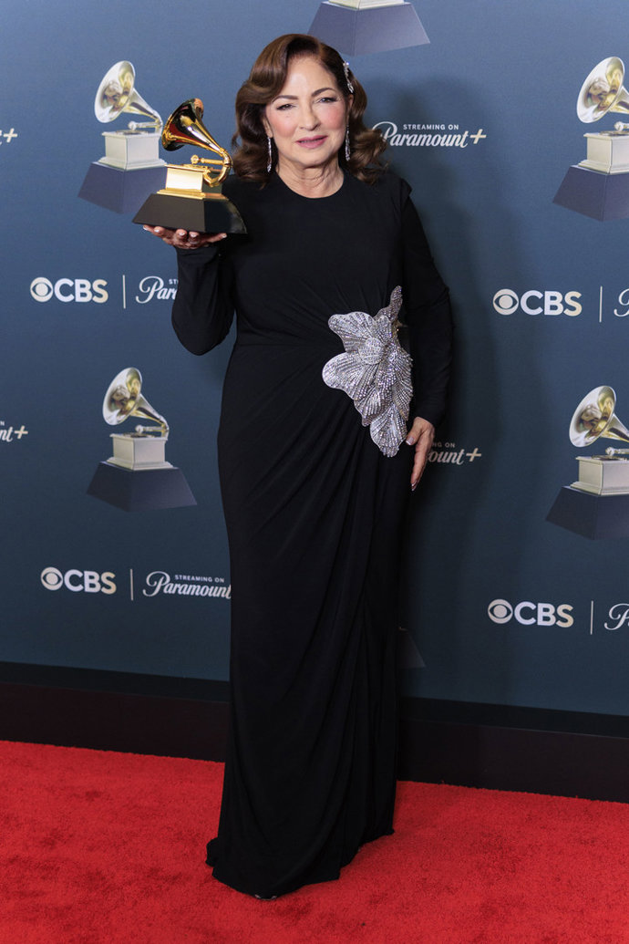 Haciendo gala de su naturalidad, Gloria Estefan no podía faltar. La artista ha apostado por el negro, cumpliendo así con el 'dress code' que pocos han atendido esta noche, luciendo un vestido sencillo en el que predominaba una flor en color plata en el lateral.