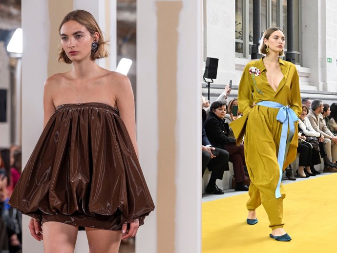 Olvídate de las siluetas pegadas al cuerpo como norma. Esta temporada, el volumen toma el control y lo hace en forma de silueta globo: pantalones, faldas y tops que se expanden y crean una nueva proporción. En desfiles como los de JC Pajares, Pedro del Hierro o Coosy, esta tendencia no solo se veía, se imponía. No es exageración, es intención y es marcar tendencia sin pedir permiso.