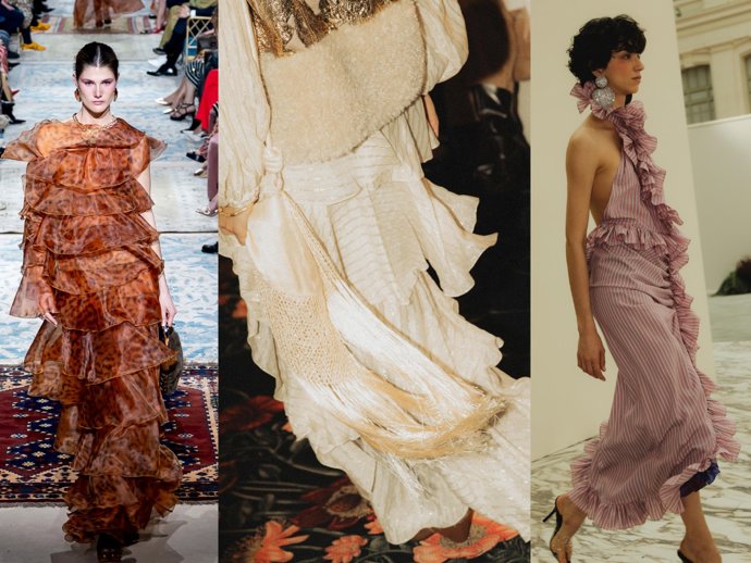 Puede que pienses que los volantes ya lo han dicho todo, pero no. Esta temporada vuelven con más fuerza, más volumen y, sobre todo, más intención. En propuestas como las de Johanna Ortiz, Lola Casademunt o Juan Vidal, cada movimiento genera algo hipnótico en cómo las prendas respondían al cuerpo. No es solo estética: es actitud en movimiento.